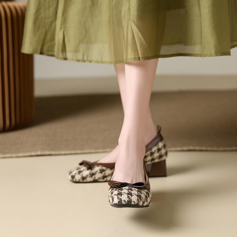 Модная женская обувь, весенняя новинка, средний каблук, ткань в клетку, обувь в стиле «маленький ароматный ветер», модная, удобная, увеличивающая рост, профессиональная обувь