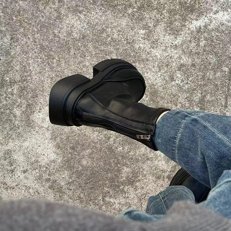 Модные кожаные водонепроницаемые женские короткие ботинки Осень Зима Массивные ботильоны Черная обувь по акции Y2k New Rock Женские ботильоны