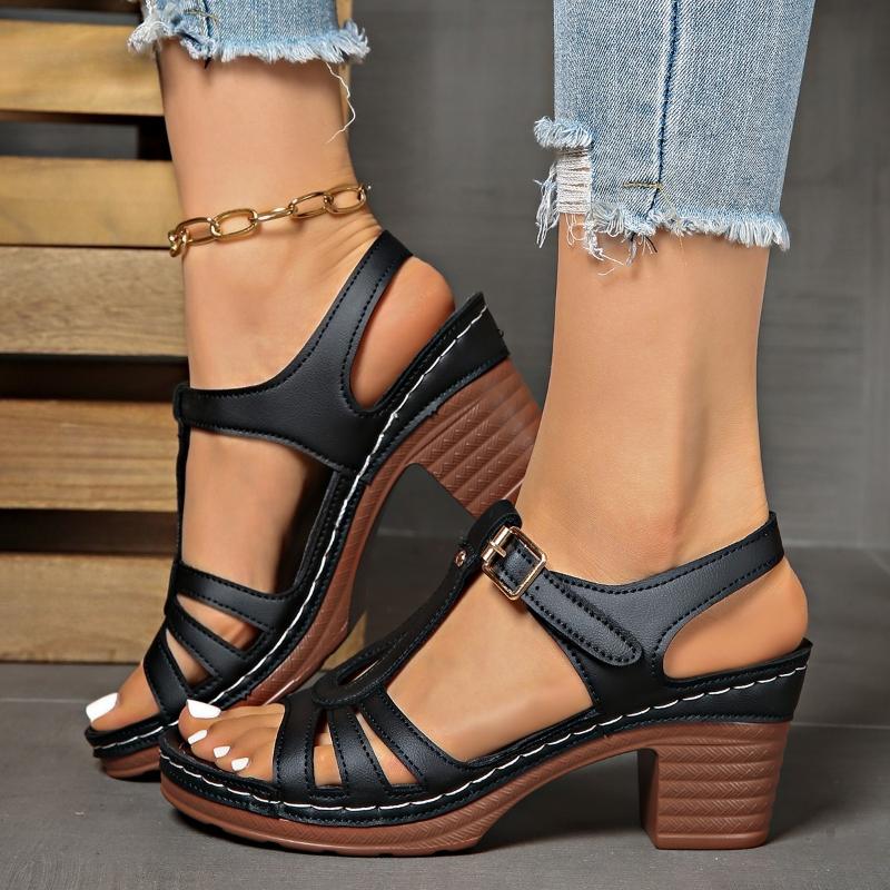 Модные сандалии на толстом каблуке с открытым носком и застежкой на одну пуговицу, 2025, лето, новые, модные, сексуальные, повседневные сандалии для женщин