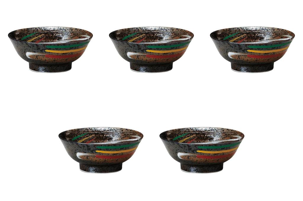 Набор из 5 чаш Сансай с грубой кистью x Чаши для рамена от Setomonohonpo 6,8 мм на высокой ножке [21 8,5 см (1300 куб.см)]
