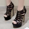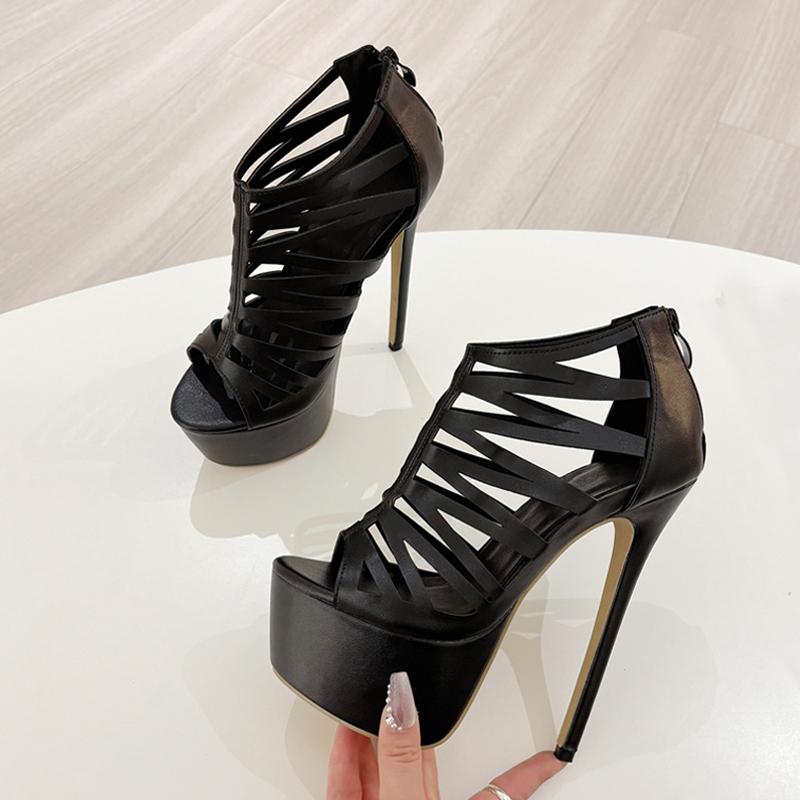 Модная летняя черная обувь на высоком каблуке Liyke для дам, кожаные туфли-платформы с вырезами, сексуальные туфли-лодочки с открытым носком на молнии, банкетные туфли для вечеринок, женские туфли-стилетто