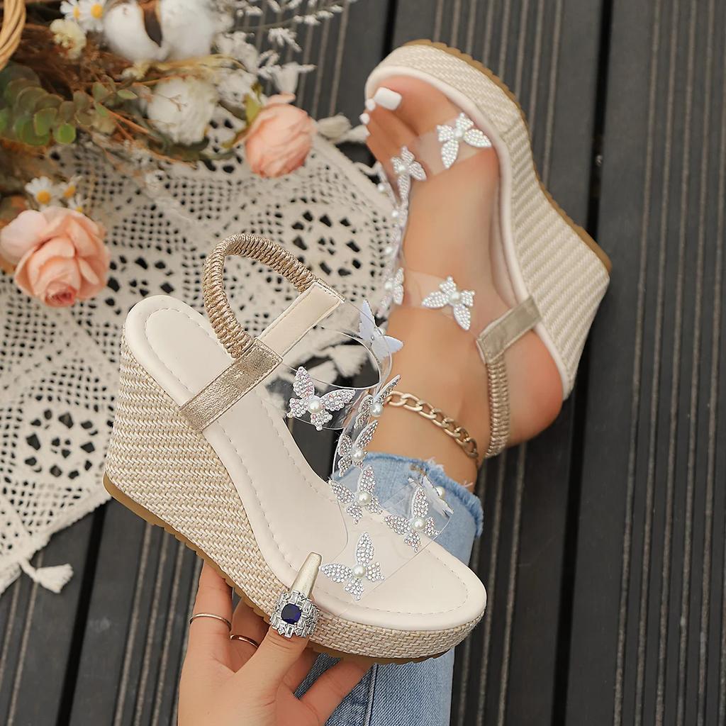 Модные женские туфли на высоком каблуке, сандалии на танкетке, туфли на платформе со стразами для женщин, модные сандалии с украшением в виде бабочки, сандалии для женщин