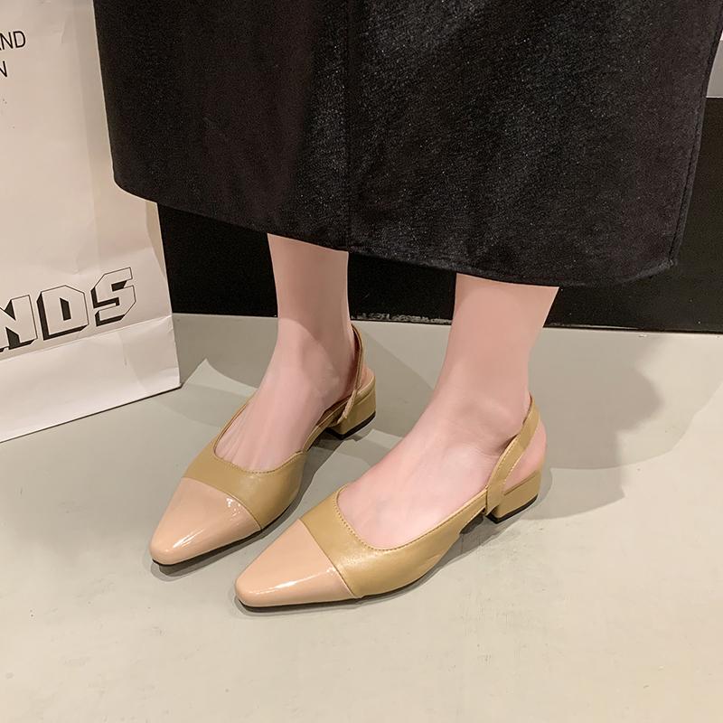 Модные сандалии-баотоу на низком каблуке, женские, французский стиль нюдового цвета, с острым носком, в стиле маленького аромата, женские туфли на толстом каблуке, с открытой пяткой, одинарные туфли