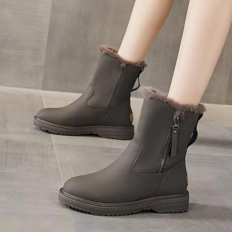 Модная водонепроницаемая обувь на платформе с круглым носком, зимняя женская обувь, кожаные женские сноубутсы на молнии по акции, модный тренд 2025, рабочие ботильоны — купить товар онлайн с бесплатной доставкой по всему миру!