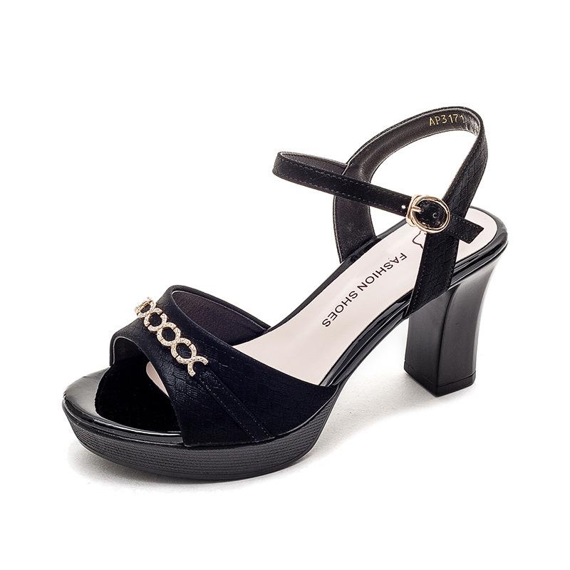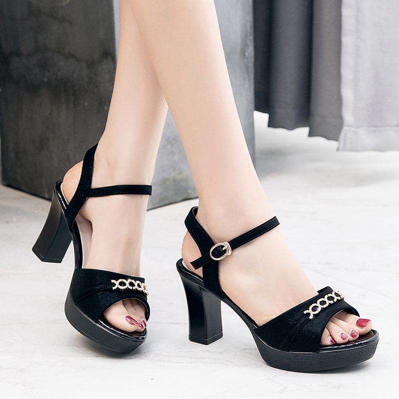 Модные женские нескользящие босоножки на высоком каблуке, лето 2024, босоножки на каблуке с металлическим украшением, роскошные сандалии из мягкой кожи с мягкой подошвой