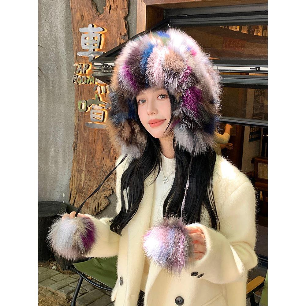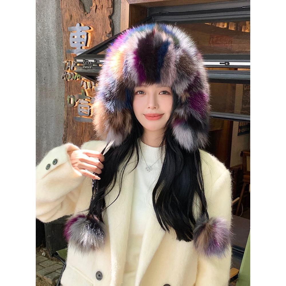 Шапка-ушанка из натурального лисьего меха, Шапка Лэй Фэн, Милая шапка с помпоном, Холодная велосипедная шапка, Теплая и флисовая вязаная шерстяная шапка, Шапка-ведро