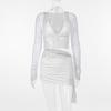 Мода Инс Новое поступление Мода Сексуальный Глубокий V Кружевная вставка Сетка Длинные рукава Топы Сексуальный Юбка-футляр Наряд Женщины