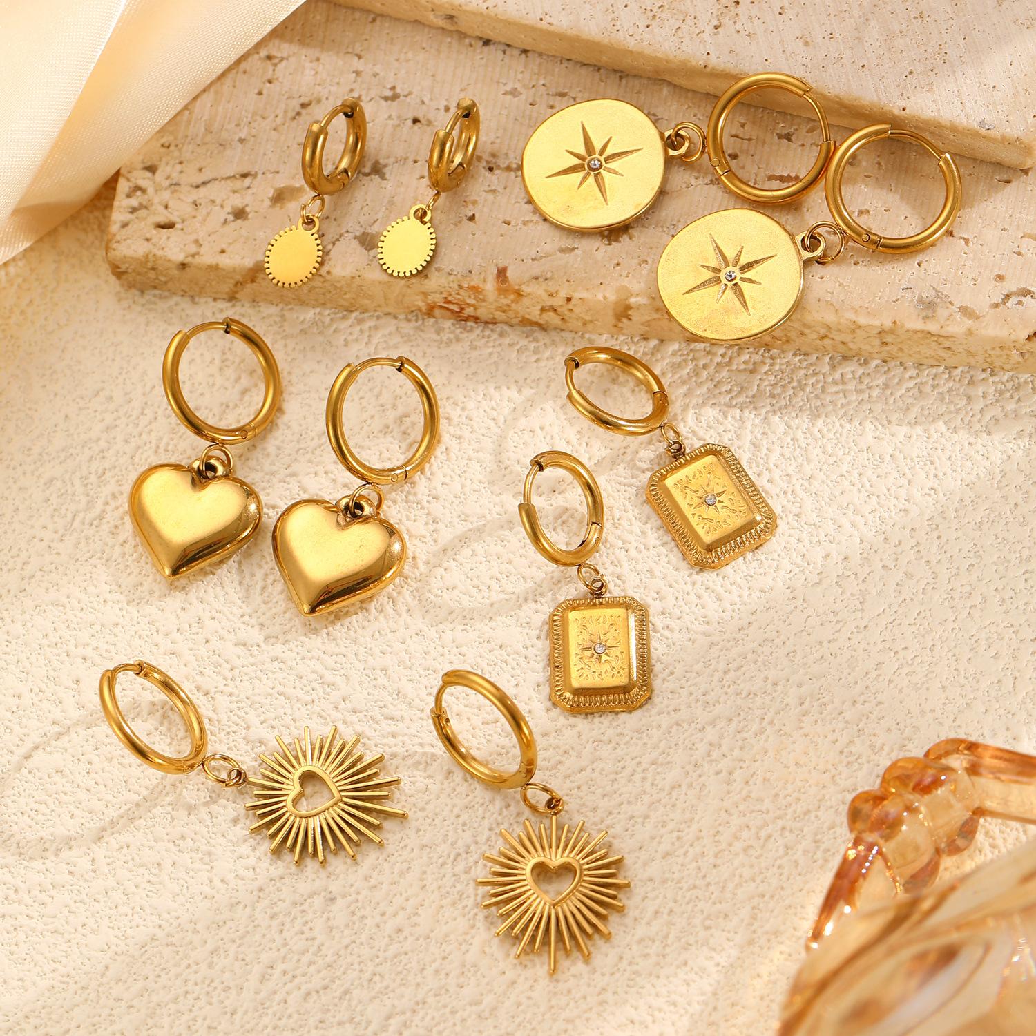 Изысканная Мода Универсальные Минималистичные Геометрические Серьги-Подвески Овальной Формы в Виде Сердца из Нержавеющей Стали для Женщин