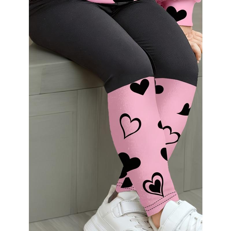 Летняя новинка для девочек, модная футболка с принтом сердечек, круглым вырезом и длинными рукавами + повседневный комплект из лоскутных брюк с милым кошачьим рисунком, наряд из двух предметов