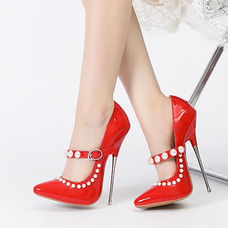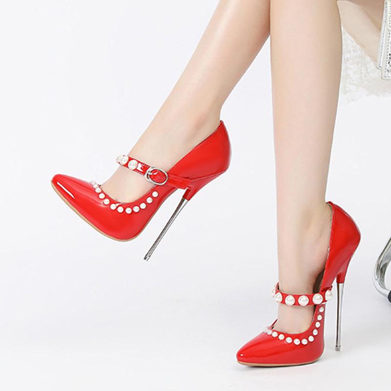 Мода Liyke Модный Дизайн Жемчужная Пряжка Ремешок Лакированная Кожа Женские Туфли-Лодочки Элегантный Острый Носок 16 СМ Фетиш Высокие Каблуки Обувь для Стриптиза