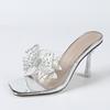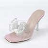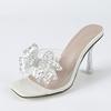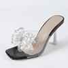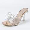 Модные прозрачные ПВХ шлепанцы Liyke для женщин, хрустальные стразы, бантик, высокие каблуки, прозрачные сандалии, модный квадратный носок, обувь для вечеринок и выпускного вечера