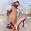 Мода Liyke Дизайнер Красная Лакированная Кожа Бант Женские Прозрачные Шлепанцы Сандалии Лето 9СМ Тонкий Высокий Каблук Туфли Женские Мюли Слайды
