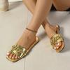 Мода 2025 Лето Новая Мода Большой Размер Плоские Шлепанцы Женские Квадратный Носок Стразы Металлическая Цепочка Мягкие Слипоны Нескользящие Вьетнамки