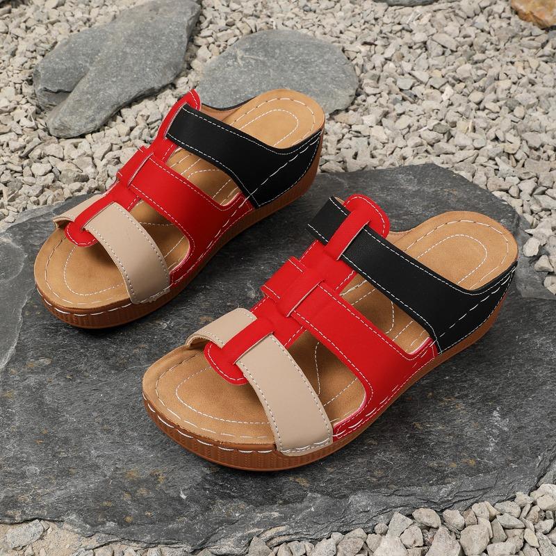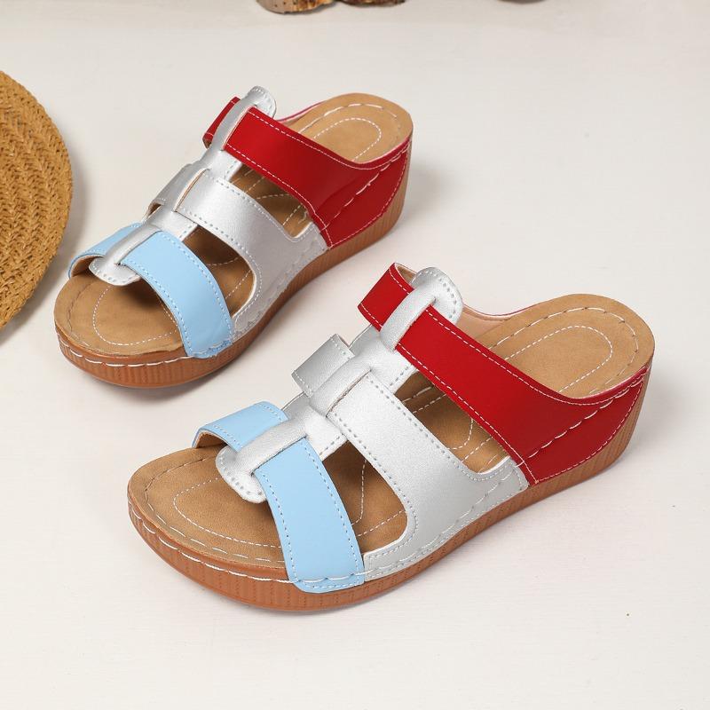 Модные цветные шлепанцы на танкетке, женские модные с круглым носком, с вырезами, прошитые, на мягкой подошве, нескользящие, на среднем каблуке