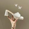 Мода 2025 Летние шлепанцы с открытым носком, сандалии на массивном высоком каблуке, слайды, праздничная обувь для женщин, вьетнамки, однотонные, конфетных цветов, большие размеры 35-46