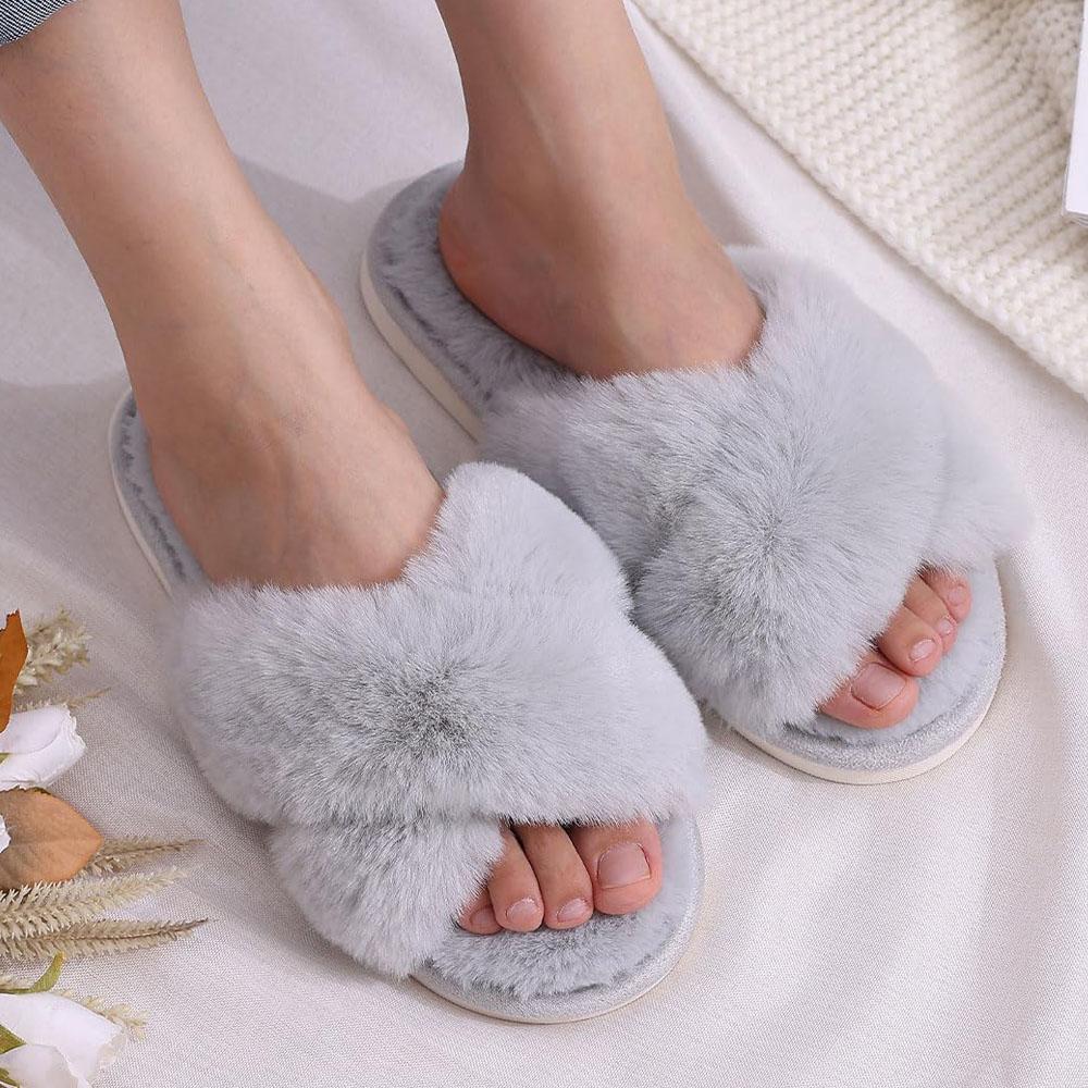 Модные детские женские пушистые меховые домашние тапочки-слайды, женские плоские пушистые тапочки для дома, плюшевые тапочки с перекрестной лямкой, нескользящие мягкие домашние тапочки