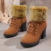 Мода Мода Зима Женские Ботильоны на Квадратном Каблуке Теплые Нескользящие на Молнии Теплые Зимние Сапоги Высокий Каблук Круглый Носок Женские Сапоги