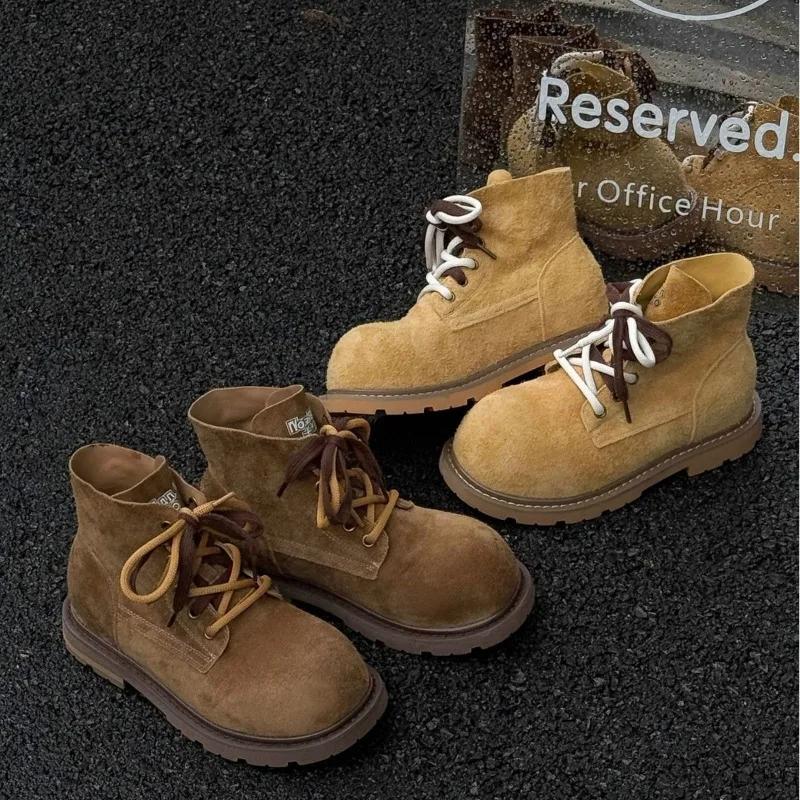 Мода 2025 Осень и Зима Новые Сапоги с Высоким Голенищем Мягкая Кожа Мягкая Подошва Ретро Женские Короткие Сапоги Рабочие Ботинки