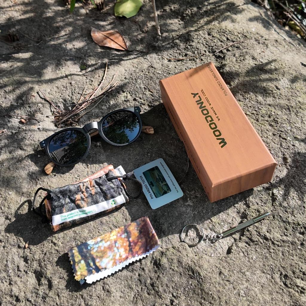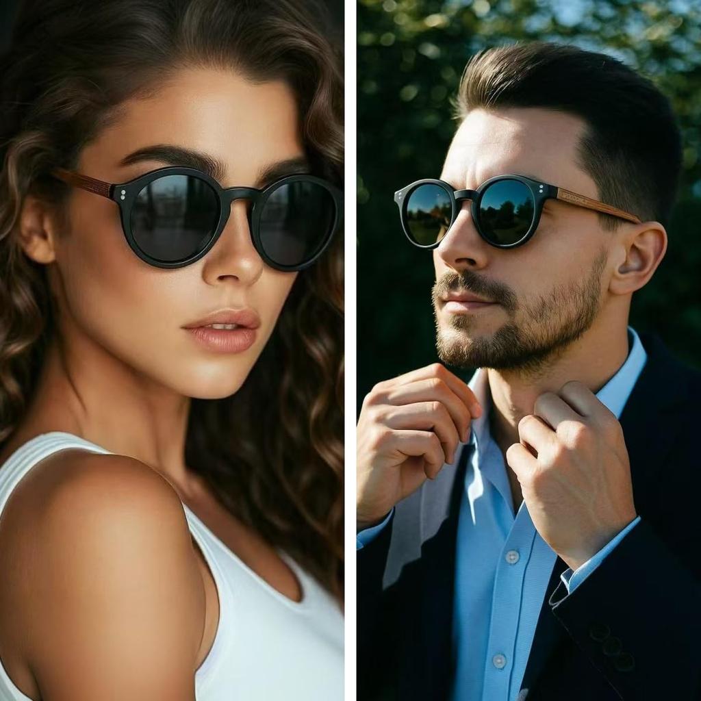 Wooden Polarized Round Sunglasses UV400 Handmade Great Gift for Men and Women [WOODONLY] - Protection, Sunglasses, (Black + Gray)