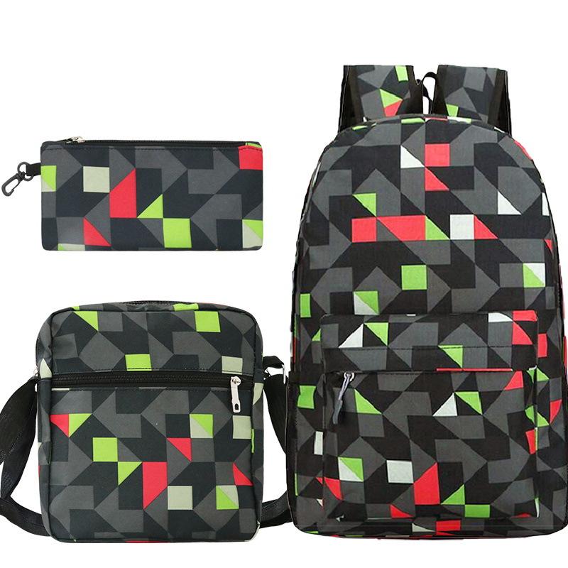 Многоцветный пустой рюкзак набор из трех предметов Студенческий рюкзак из ткани Оксфорд + сумка через плечо + пенал набор из трех предметов