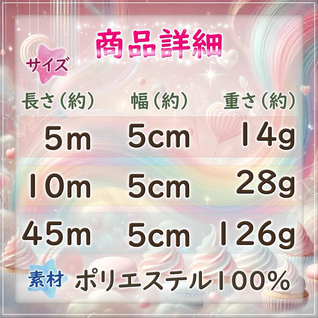 [Размер] 45м x приблизительно. 5см [Вес] 126г [Цвет] Розовый + Фиолетовый + Синий [Материал] 100% Полиэстер [※Примечание] Из-за производственного процесса швы встречаются примерно каждые 2 метра.