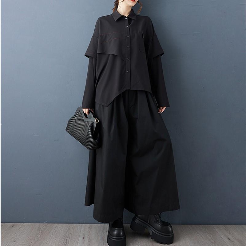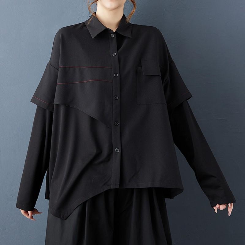 Рубашки и блузки винтажные черные оверсайз с длинным рукавом для блузки Повседневные свободные весенне-осенние топы женская рубашка на пуговицах
