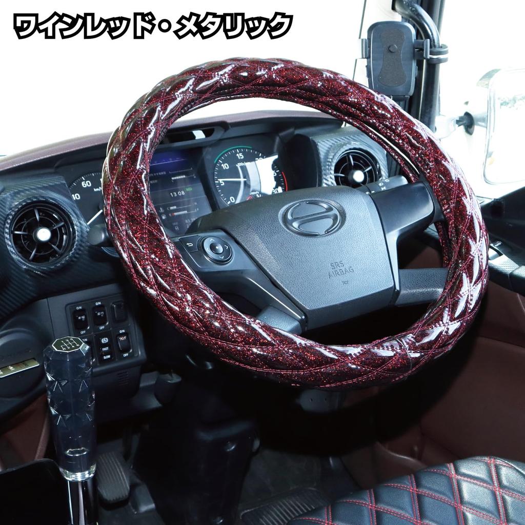JET INOUE Fuji Double Stitch Steering Wheel Wine Red 586723 Cover, ML-M, Metallic,