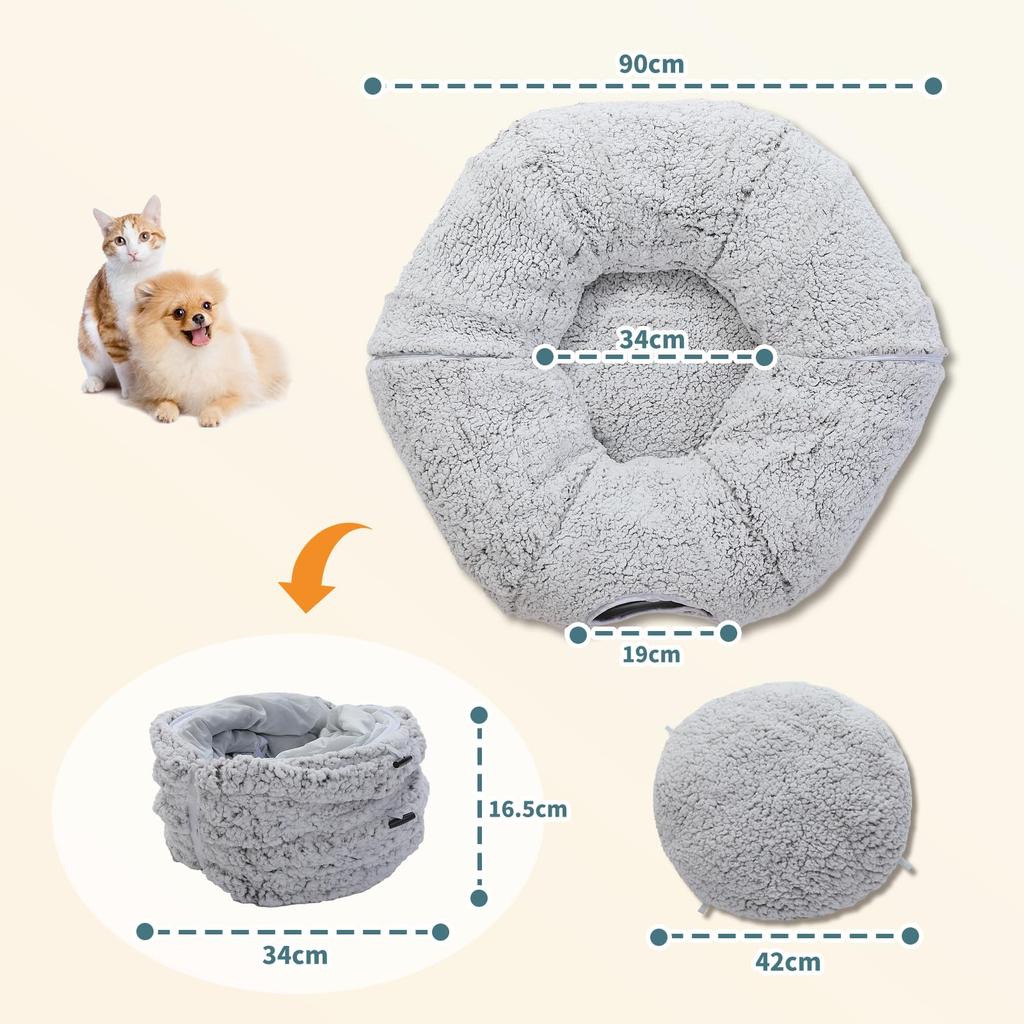 Туннель для кошек PAWZ Road, Популярная лежанка для кошек, Игрушка, Развлечение, Игра в одиночку, В форме пончика, Круглый, Пушистый, Складной, Легко хранить, Тканевый туннель для кошек, Экономия места, Снятие стресса, Физические упражнения, Для использования в помещении, О-образный - Серый
