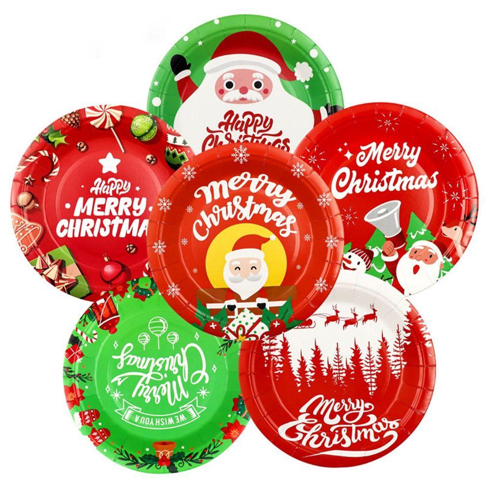 Экологические рождественские бумажные тарелки, одноразовые рождественские бумажные стаканчики, рождественский набор посуды для дома