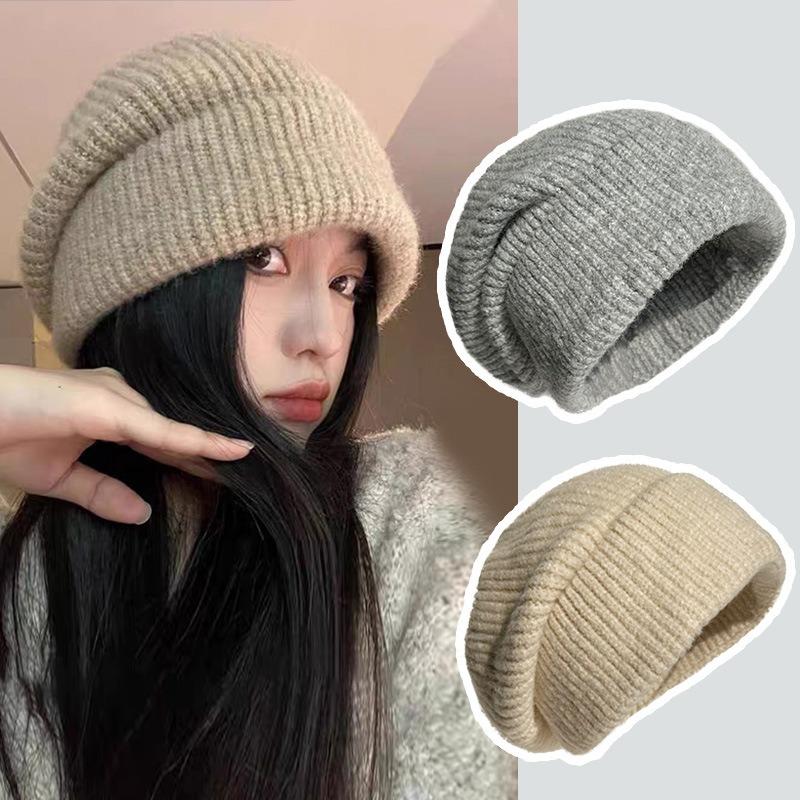 Шерстяная шапка большого размера, женская зимняя теплая с защитой ушей, свободная, для маленького лица, корейская вязаная шапка с ворсом, холодная шапка