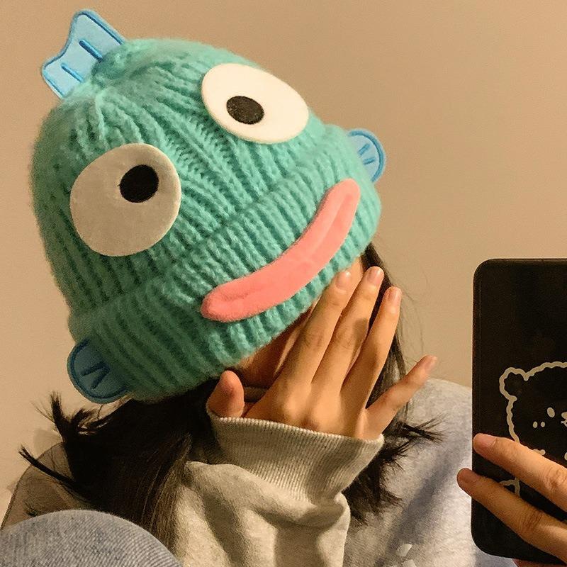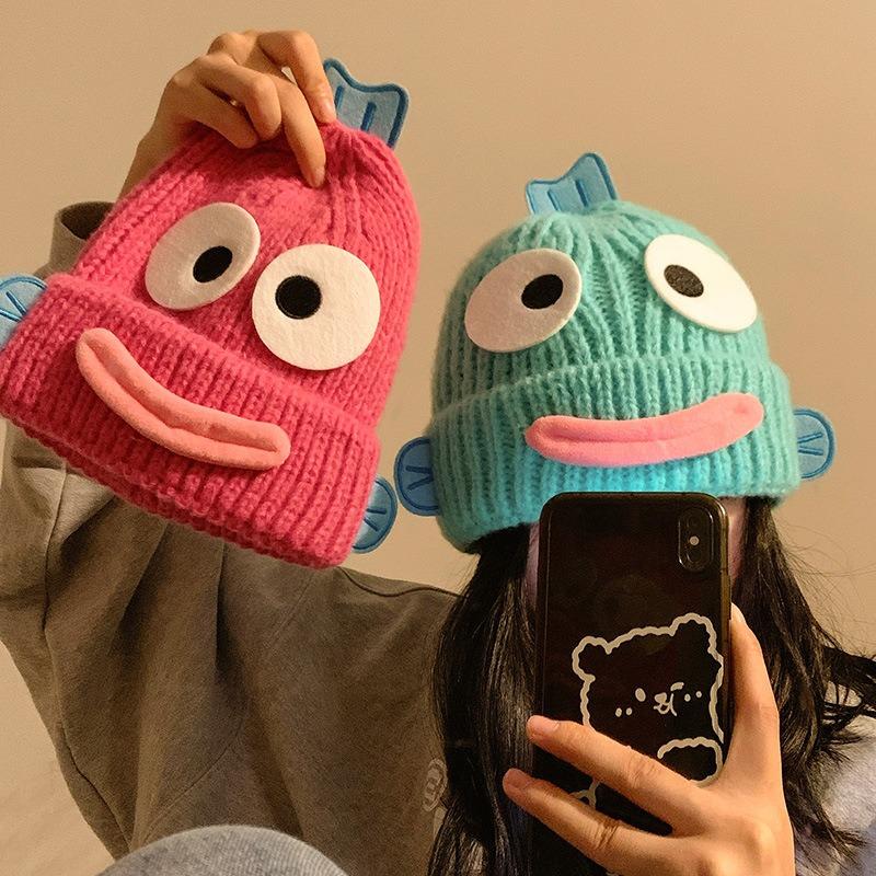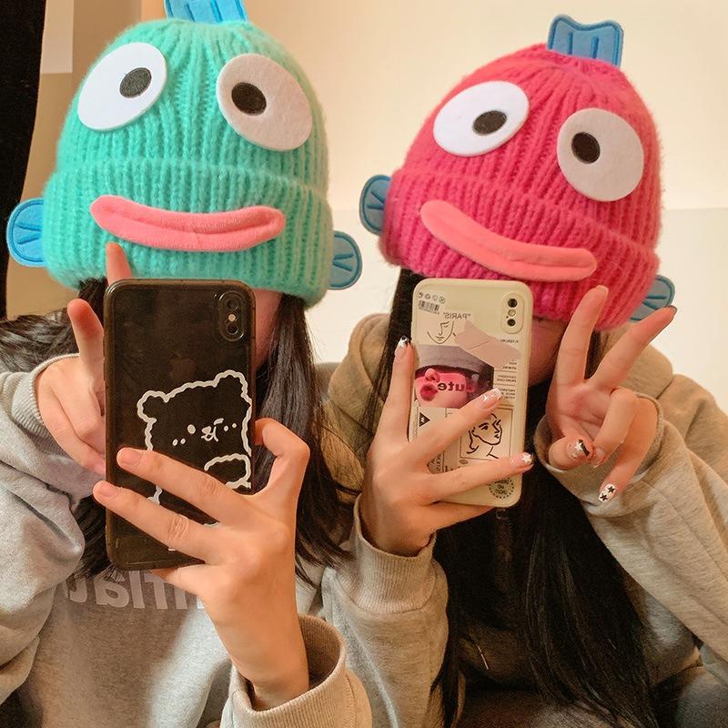 Милая смешная уродливая шапка-рыба женская осенне-зимняя теплая утолщенная шапка с защитой ушей вязаная шерстяная шапка студенческая новая холодная шапка