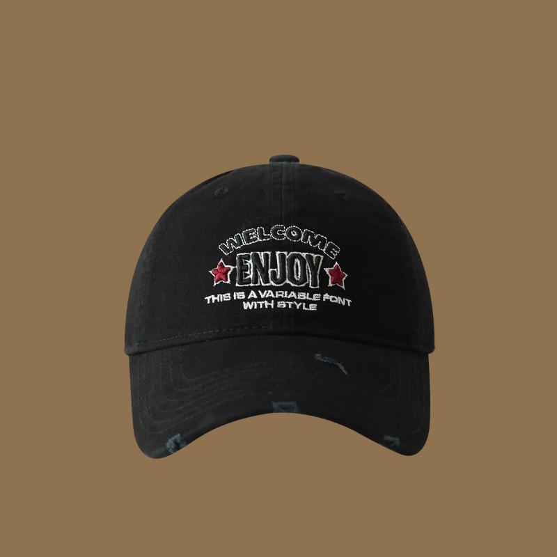 Retro old ripped embroidery baseball cap children big head circumference show face small sunshade cap