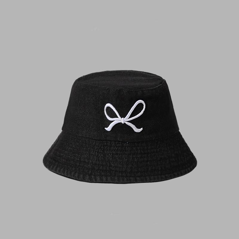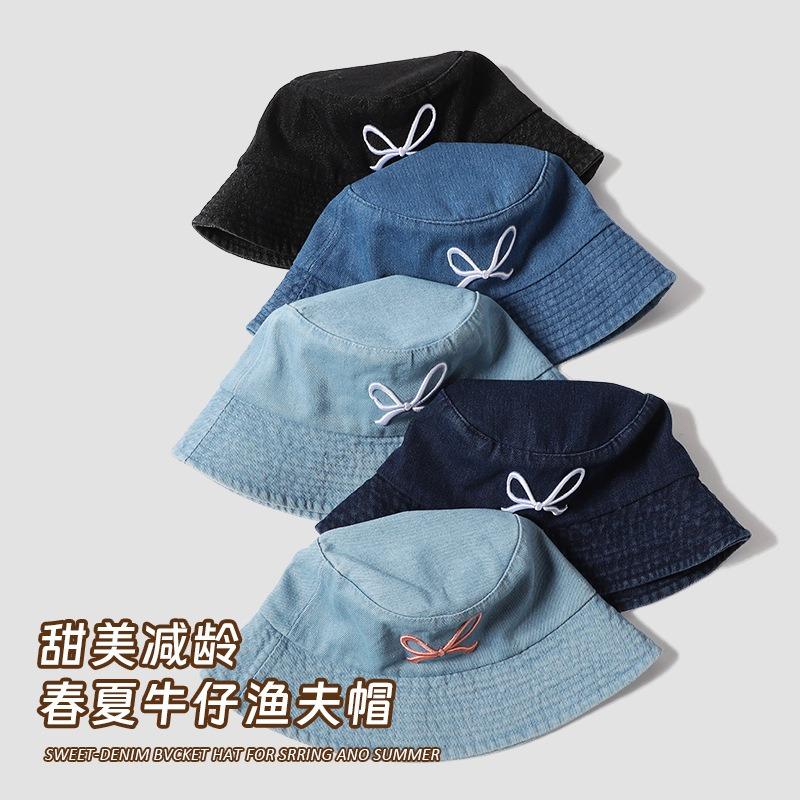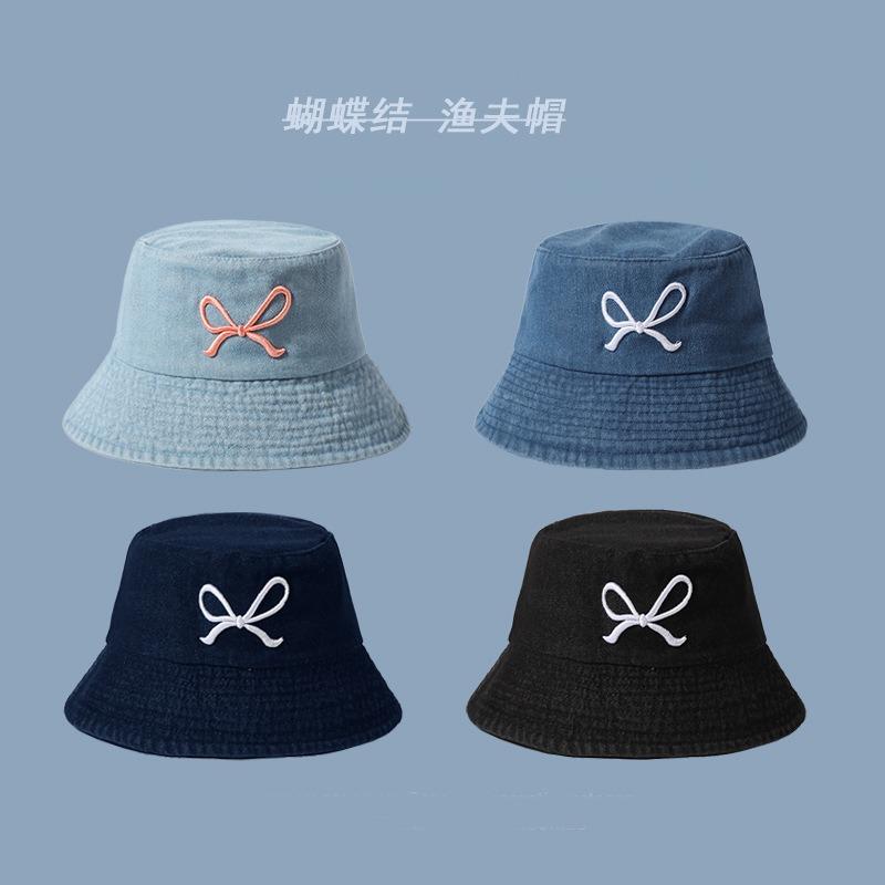 Джинсовая шляпа-панама с вышивкой в виде банта, детская, весенне-летняя, модная, для путешествий, солнцезащитная, от солнца, шляпа-ведро