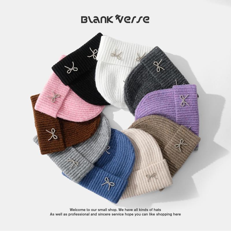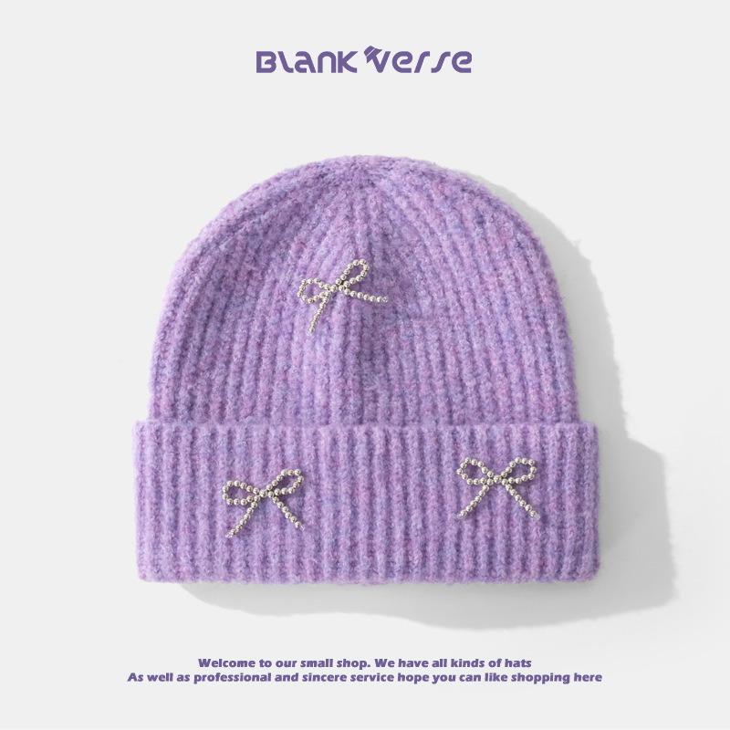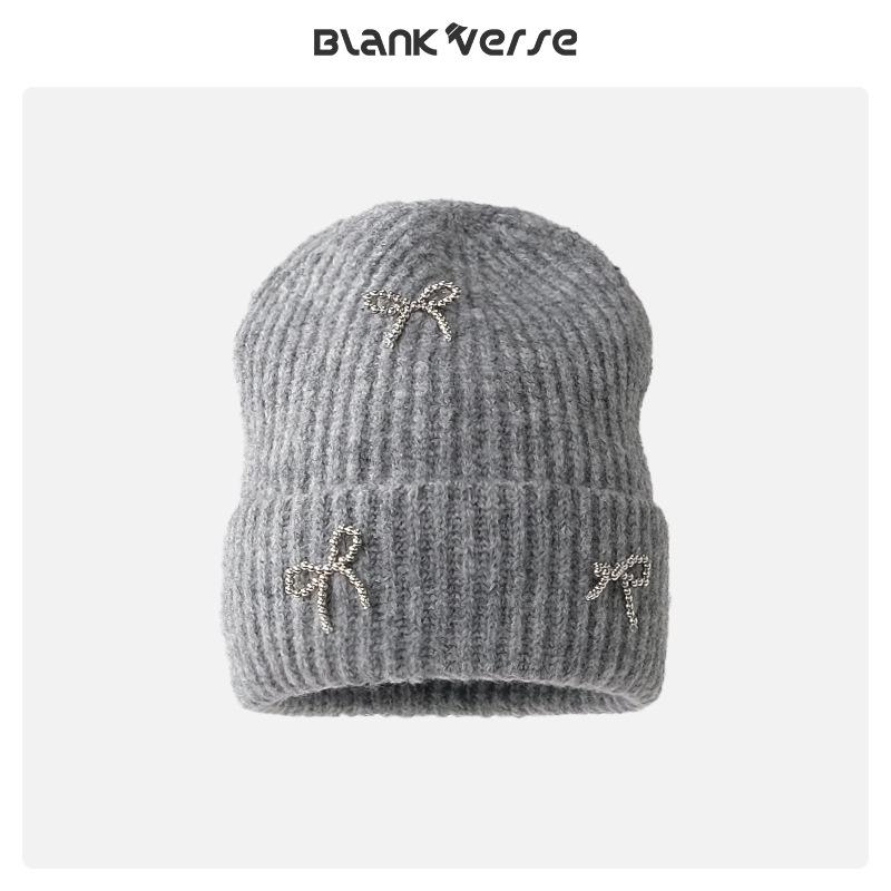 New pearl bow wool hat big head circumference ear protectors knitted cold hat tide