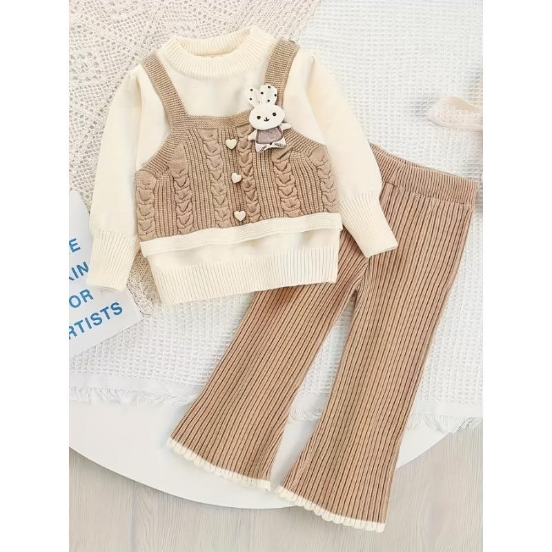 Комплекты свитеров для девочек Осень/Зима Новый стиль: Милый и стильный вязаный топ-двойка и длинные брюки, комплект-двойка для детей, для улицы