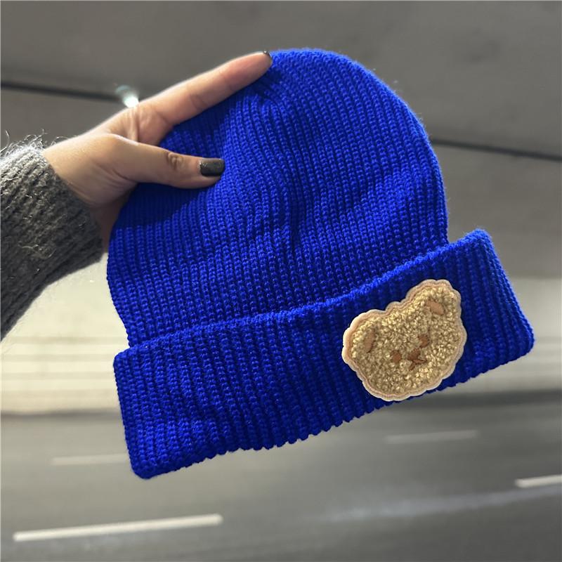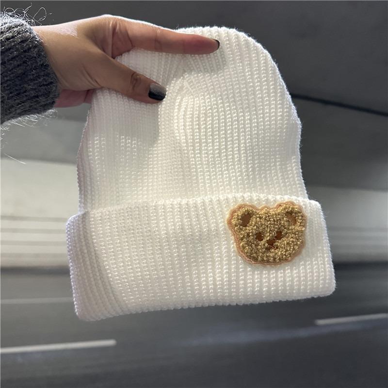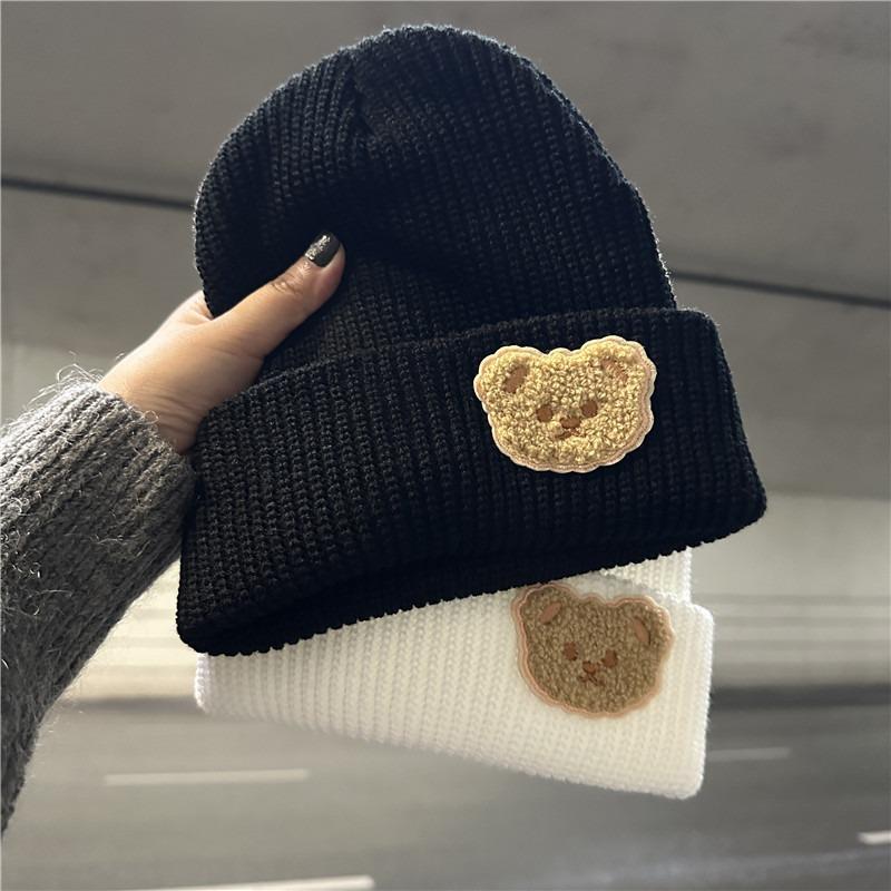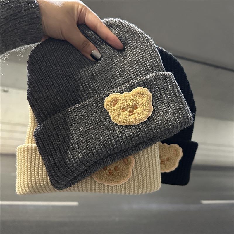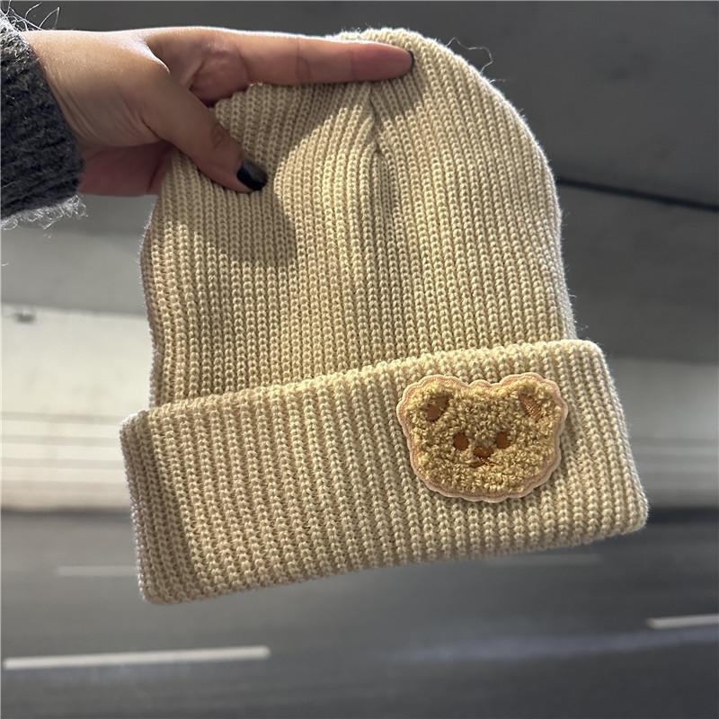 Милая шерстяная шапка с медвежонком, женская новая осенне-зимняя теплая шапка от холода, защита ушей, универсальная вязаная шапка, тренд