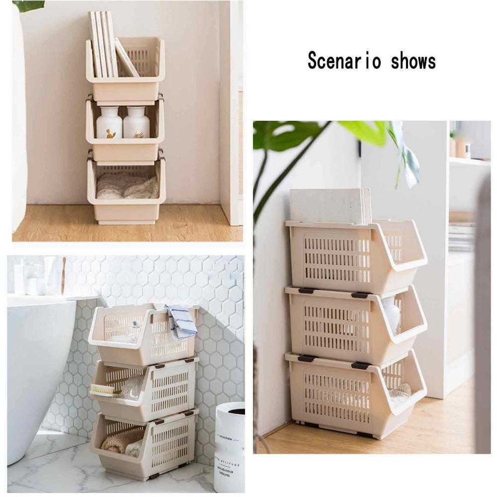 Кухонная штабелируемая корзина на колесах Стойка для хранения игрушек Пластиковые штабелируемые контейнеры Открытый фронт Кладовая Фрукты Кухня Ванная