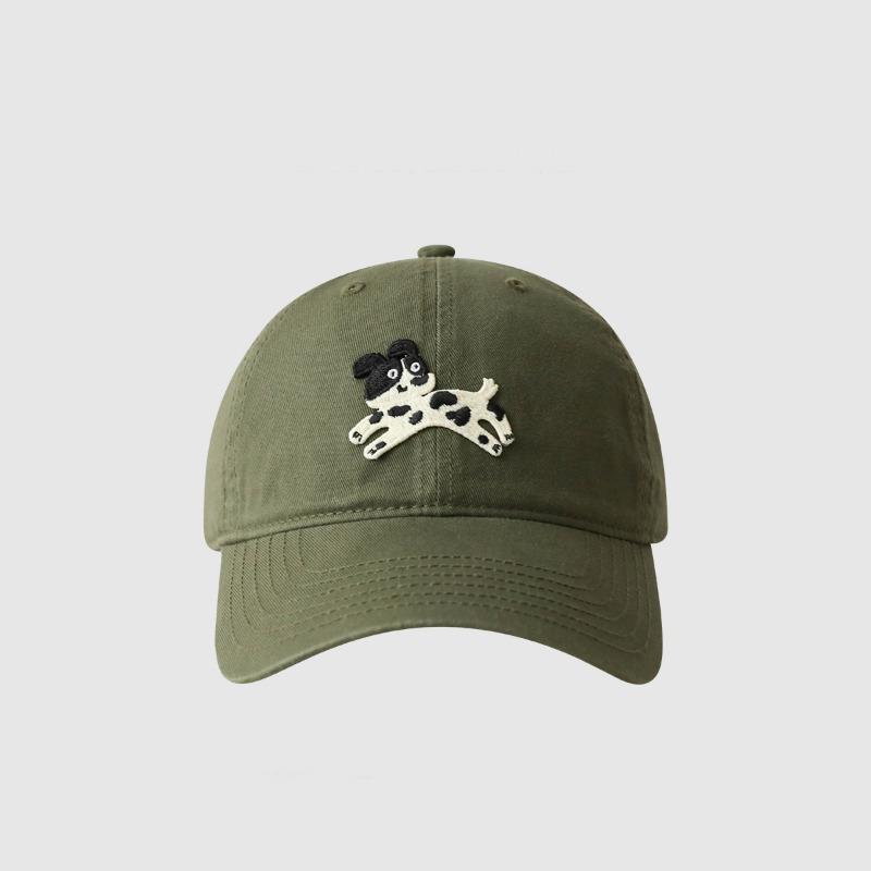 Cute cartoon dog hat for men and women, wide brim, small face, pure cotton soft top cap, couple baseball cap