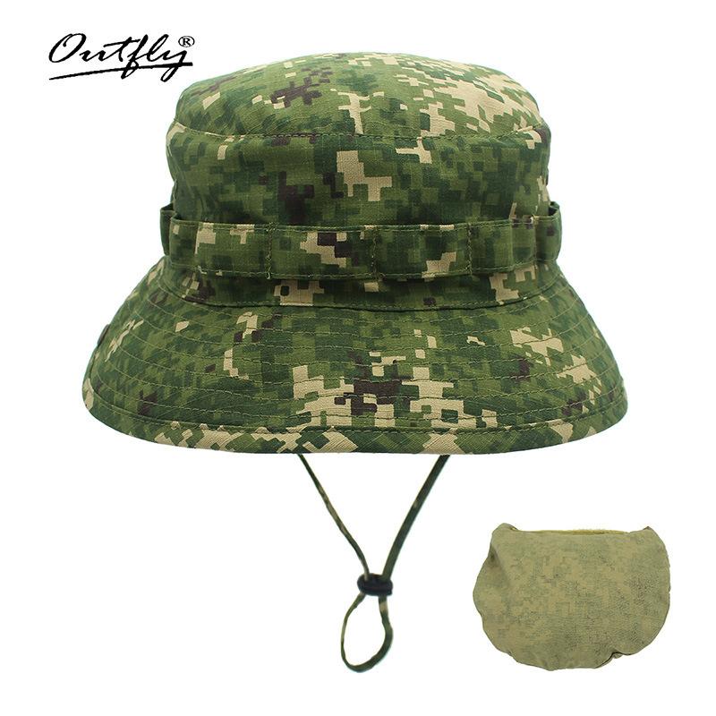 Camouflage mountaineering basin hat outdoor men's big head circumference bucket hat sun protection can be stored bionic camping jungle hat