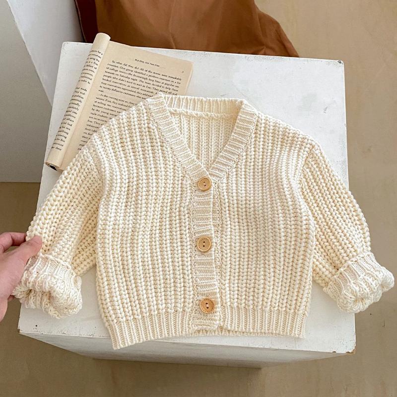 Популярный стиль интернет-знаменитости, модный детский свитер с V-образным вырезом из жемчужного трикотажа для младенцев, кардиган с длинным рукавом для новорожденных