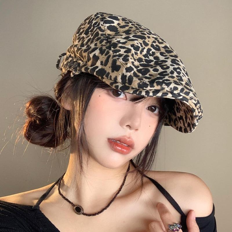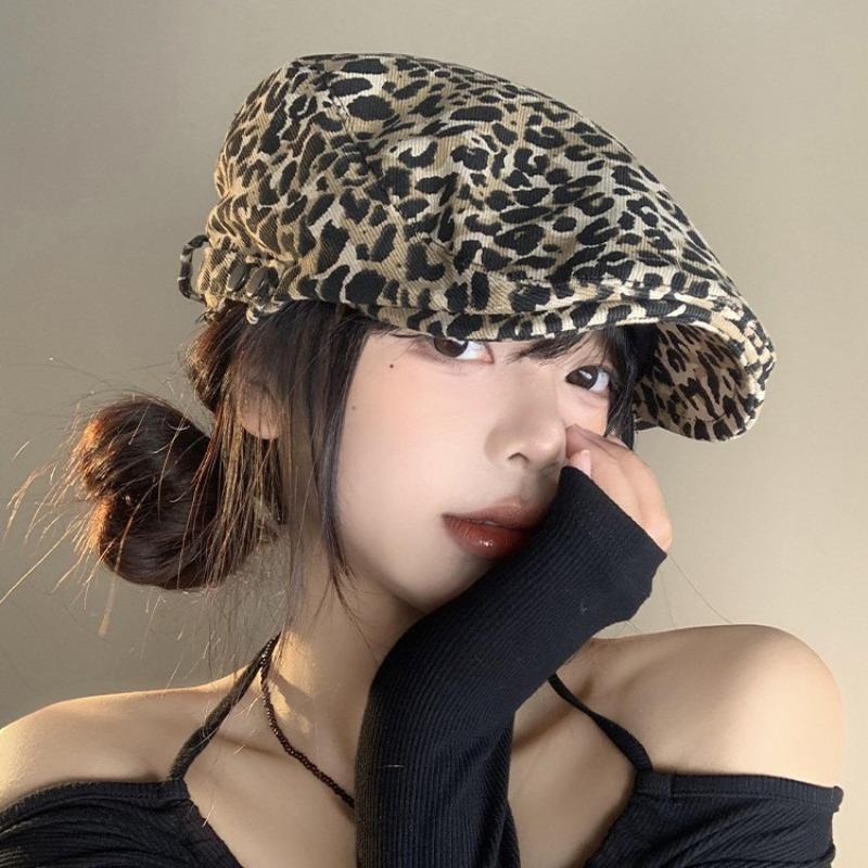 Винтажная красотка леопардовый принт кепка вперед женская осень и зима нишевая шапка y2k шляпа с глубокими полями женская