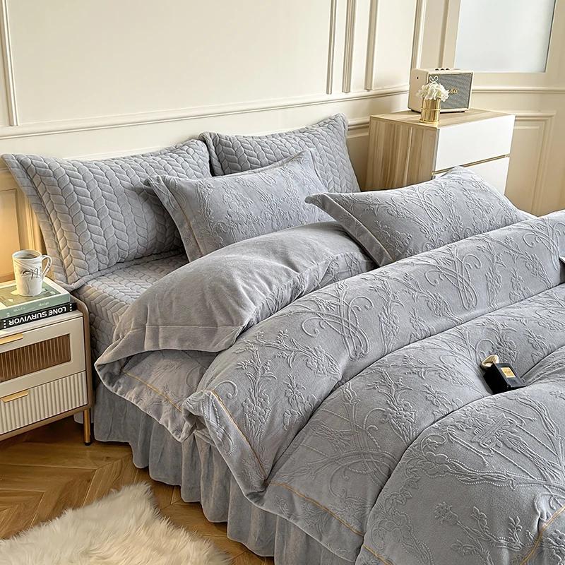 Новый молочный флис 2025 года, трехмерная резная стеганая кровать, комплект из четырех предметов, пушистый и дышащий