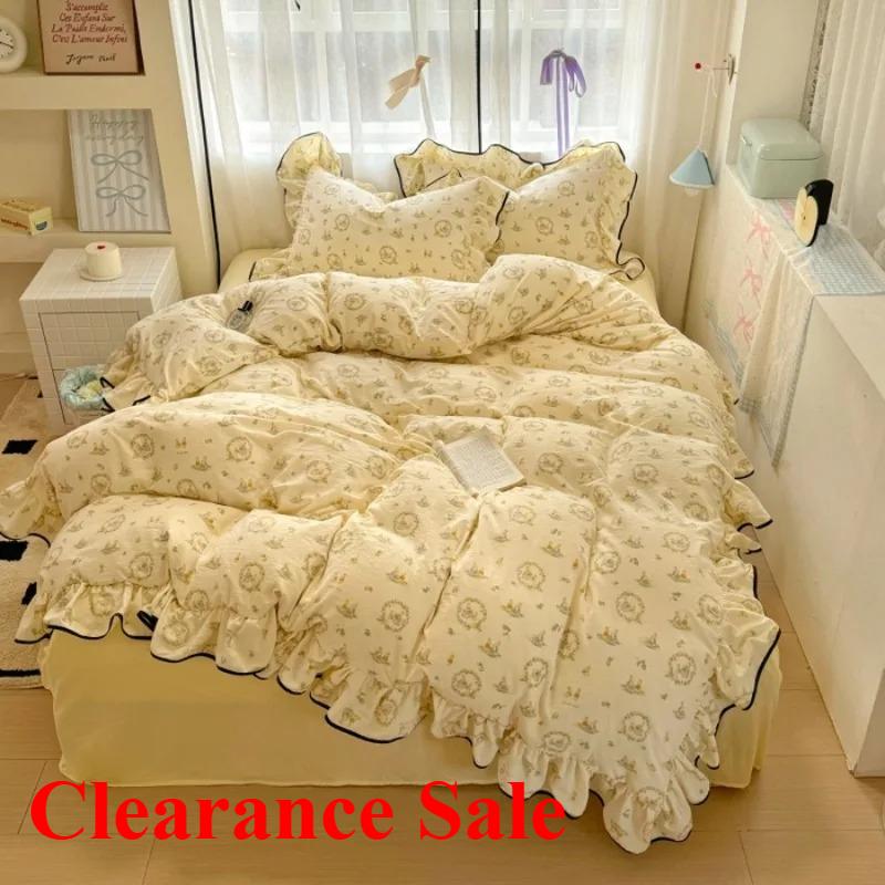 2025 новый кремовый кружевной девичий пудровый клетчатый корейская версия кровать 4 предмета стиранный хлопок двухслойная пряжа пододеяльник общежитие — купить товар онлайн с бесплатной доставкой по всему миру!