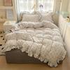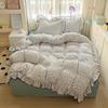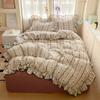 2025 новый кремовый кружевной девичий пудровый клетчатый корейская версия кровать 4 предмета стиранный хлопок двухслойная пряжа пододеяльник общежитие