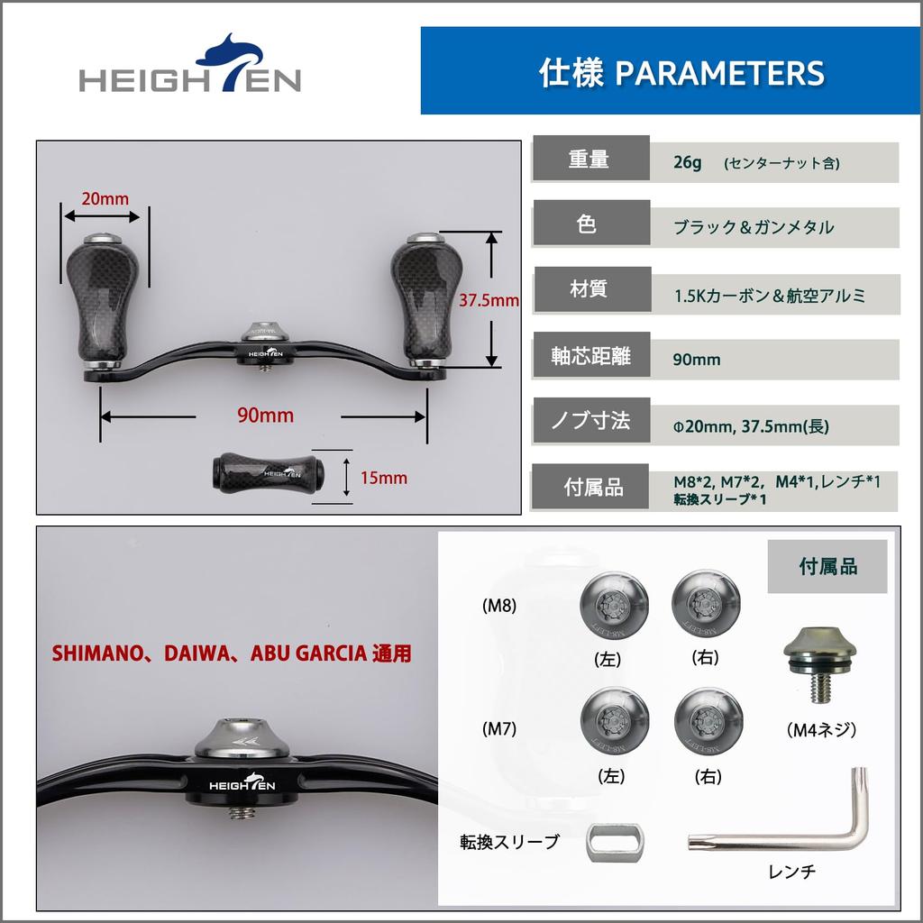 HEIGHTEN 90mm Reel Handle with Carbon Knob for and Abu Compatible Baitcasting Arch Gourd Series Handle 20mm Knob 20mm/21mm Shimano, Daiwa, Reels,