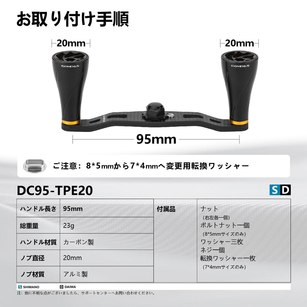Gomexus DC95 Reel Carbon Fiber Double Handle for and Antares Spinning 95mm with Aluminum A20 Handle for Baitcasting and Bass Ambidextrous Handle,