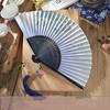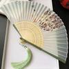 Маленький танцевальный веер в древнекитайском стиле, летний портативный веер для ханьфу и ципао, ручной веер, зеленые бамбуковые спицы, односторонний складной веер