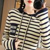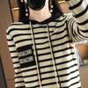 Полосатый вязаный свитер с капюшоном женский осенне-зимний новый свободный повседневный свитер в сочетании цветов носить полосатый свитер
