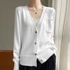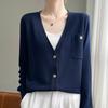 Вязаный кардиган с длинным рукавом Женская короткая куртка Свитер Высокий дизайн Нишевый Свободный Тонкий V-образный вырез Топ