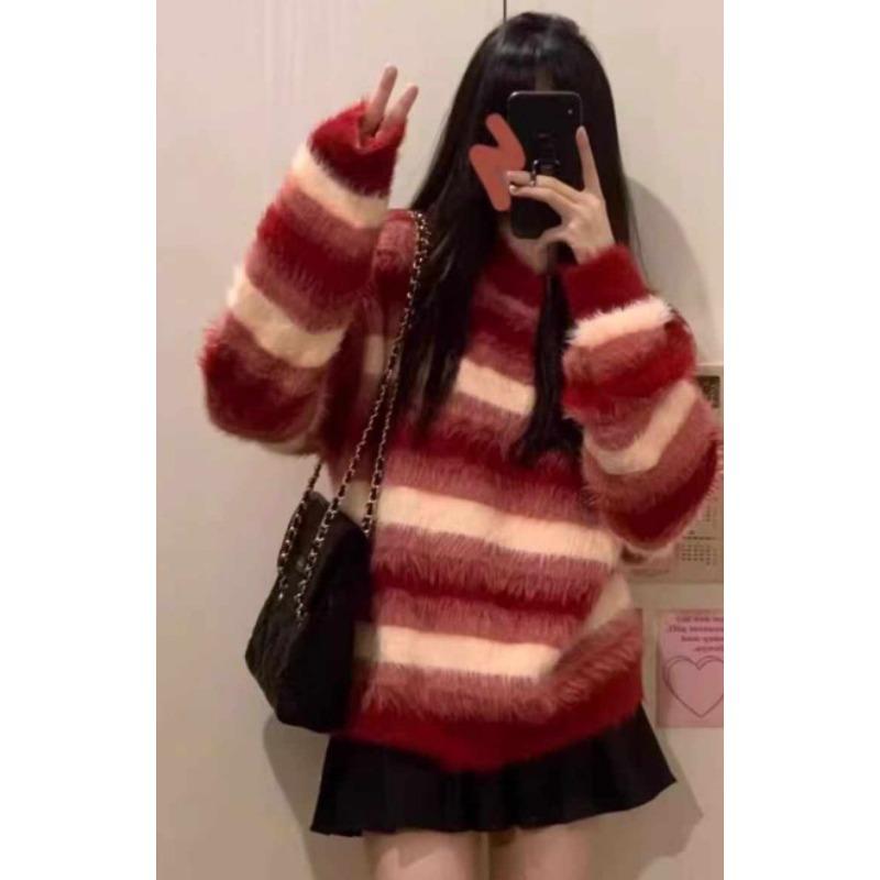 Осень и зима милый ветер имитация норки флис мягкий восковой свитер женский новый ленивый ветер полосатый вязаный пуловер женский